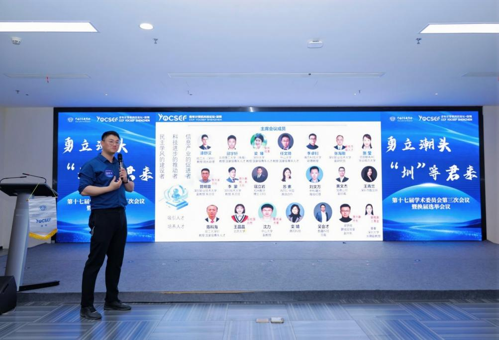 2026年1月18日,CCF YOCSEF深圳第十七届学术委员会第三次会议暨2026-2027年AC委员换届选举会议在深圳市南山区西丽湖人才服务中心T2国际会议厅举行。出席会议的人员有YOCSEF深圳AC委员18位(漆舒汉、梁臻、邱宇轩、任文琦、张海刚、李卓钊、沈力、王晶晶、黄文杰、吴会才、苏素、栾婧、陈科海、寇立岩、李蒙、梁骁俊、刘文万、管明雷),学术AC候选人5位(段海涵、刘刚、马智恒、彭佩玺、詹靖涛),非学术AC候选人5位(李东阳、汪华、白瑞、谭程明、赵安)等。列席会议的有YOCSEF创始人杜子德,YOCSEF 秘书长谭晓生、YOCSEF总部AC张莹、张忠宝、鄢兴雨、东昱晓、陈小军,YOCSEF深圳历任主席毛睿、冯圣中、袁春、卢昱明、齐竹云、黄典、郑毅、卢昱明、魏彦杰、张伟鹏、汤步洲和历任AC陈伟、周伟峰等。YOCSEF广州 黄栋、刘同来、姜思雨、李宇翔,YOCSEF香港 刘东屏,YOCSEF郑州 陆丽、穆清、刘启东,YOCSEF沈阳 付昱凯,YOCSEF上海 刘斐,YOCSEF厦门 杜远智、彭佳林,YOCSEF青岛 李太忠、姜桂圆,YOCSEF桂林 梁应毅,YOCSEF重庆 祝清意,YOCSEF 苏州 李华康、张露瑶、王涛,YOCSEF 哈尔滨 玄世昌, YOCSEF合肥 李文杰,YOCSEF 济南 任崇广,YOCSEF 重庆 王宁,YOCSEF 杭州 周武杰、冯阳、于开丞、温震宇,YOCSEF 成都 唐诗、白杨、丁熠、刘昶,YOCSEF 武汉 袁鑫、刘袁媛 ,YOCSEF 南京 朱光辉、孟凡、符润泽,YOCSEF 西安 罗靖、张佳龙,YOCSEF 长春 祖建,以及来自香港、澳门、珠海等地的学术和企业界多位代表出席。