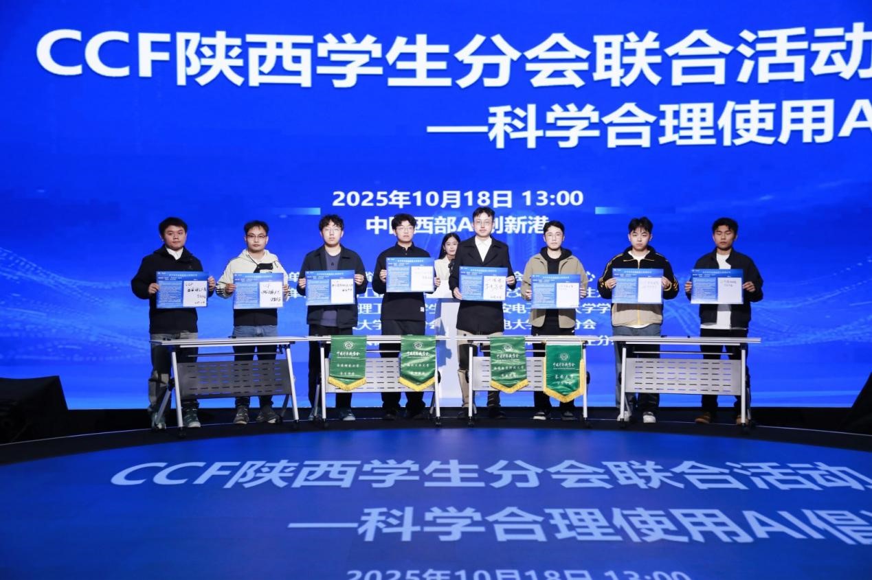 2025年10月18日,由CCF YOCSEF西安和CCF陕西各高校学生分会(共8个)联合组织并发起的“驾驭AI,而非依赖AI——科学合理使用AI倡议活动”在中国西部AI创新港举办。本次活动由CCF西北工业大学学生分会主席习嘉琪主持,来自西北工业大学学生分会、西安交通大学学生分会、西安电子科技大学学生分会、西安理工大学学生分会、长安大学学生分会、西安邮电大学学生分会、西北农林科技大学学生分会、榆林学院学生分会等全省8家CCF学生分会的学生代表共同围绕AI使用伦理与独立思考能力展开深入探讨。CCF YOCSEF总部学术秘书唐晓岚、总部AC陈小军、CCF YOCSEF西安主席许鹏飞、副主席崔禾磊、AC李宇楠等多位教师受邀参会发言。活动线上线下同步进行,参与师生近百人。