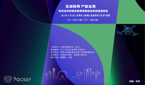 2025 年 11 月 29 日,由中国计算机学会(CCF)主办、YOCSEF 苏州学术委员会组织的 “低空经济突破发展瓶颈赋能全球的破局路径 — 区域协同 产能出海” 观点论坛(CCF-Yo-25-080)在苏州工业园区新盛里低空经济产业园举办。论坛得到苏州工业园区低空经济产业发展有限公司、苏州智行众维、苏州博士联合会等单位支持,执行主席由昆山杜克大学数字创新研究中心副高级研究员、CCF YOCSEF 苏州AC及学术秘书张露瑶,及苏州智行众维投融资负责人、YOCSEF AC 王楠共同担任,汇聚产学研政、行业协会、金融机构等众多嘉宾,亦吸引国际友人参与。论坛分上午预热沙龙、中午特色参观与下午主论坛三个核心环节,上午以 “感知体验 + 初步对接” 奠定产业认知基础,中午通过特色展厅参观深化航空文化认知,下午以 “深度思辨 + 路径拆解” 输出破局解决方案,三者从 “产业认知 - 文化科普 - 实践落地” 层层递进,形成 “产业现状认知 - 跨界需求碰撞 - 核心瓶颈拆解 - 全球破局路径” 的完整讨论闭环,共探低空经济跨界融合与全球化发展新方向。