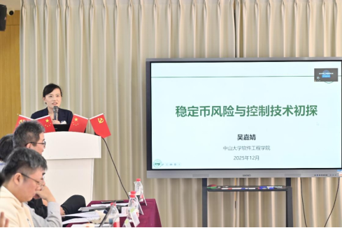在引导发言环节,首先由中山大学教授吴嘉婧稳定币风险与控制技术初探为题,从软件工程与底层代码的视角出发,深度剖析了稳定币在监管合规与技术安全面临的双重挑战。发言详细梳理了全球主要经济体及中国香港对稳定币从原则监管向牌照化治理的演进趋势,提出系统层-市场层-生态层的三维风险分析框架。在系统层,聚焦代码逻辑缺陷与中心化治理的透明度问题;在市场层,探讨算法失灵、预言机错误导致的脱锚风险及价格操纵;在生态层,则揭示了利用非法OTC平台进行洗钱与诈骗的黑色产业链。该研究通过层层拆解技术架构与应用场景,为识别新型金融犯罪与构建更严密的监管防线提供了坚实的技术支撑。