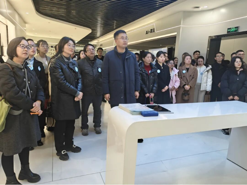 师生一行首先参观了科大讯飞人工智能技术展示区与应用体验中心,沉浸式体验了其在智能语音、自然语言处理、多模态交互等领域的核心成果。从搭载星火大模型X1.5、具备24通道扬声器阵列的AI黑板,到3秒完成眼底病变筛查的“智医助理”;从支持130余种语言实时翻译、荣获IDC评测全维度第一的星火语音同传2.0,到应用于长安汽车等企业的工业声纹质检系统——一系列前沿应用生动展现了人工智能在教育、医疗、工业等领域的深度融合与价值落地。