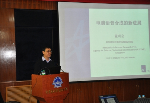 随着互联网服务和搜索技术的发展,自然语言处理技术面临着迫切的实际应用带来的挑战。每年的各种顶级会议(SIGIR、AAAI、IJCAI等)中,都有相当部分的自然语言研究成果得到发表。本次报告会邀请到了来自新加坡资讯通讯研究院的董明会博士和苏州大学的周国栋教授,围绕语音语言技术展开讨论。董明会博士介绍了所在团队近年来在语音技术特别是语音合成方面的进展,将复杂的语音合成技术介绍的深入浅出。而周国栋教授则从自己近年的研究脉络出发,高屋建瓴地勾勒出语言中存在的各种关系带来的实体、事件、语义计算等任务。