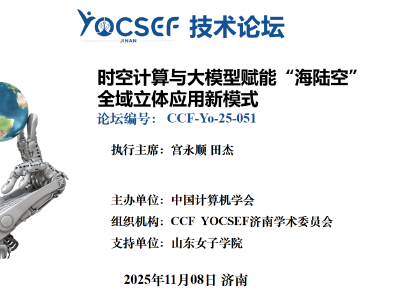 2025年11月8日,CCF YOCSEF 济南学术委员会在山东女子学院举办“时空计算与大模型赋能‘海陆空’全域立体应用新模式”技术论坛。论坛围绕“海陆空”全域立体计算的智能化研究,探讨时空计算与大模型在其中应用的前沿...