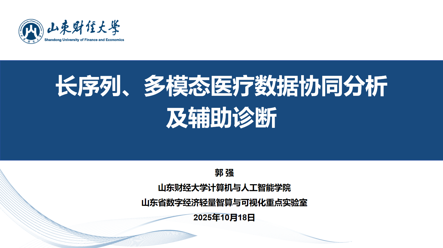 在引导发言环节,三位嘉宾从技术、安全和临床实践角度切入,揭示了AI医疗面临的数据挑战。山东财经大学郭强教授在题为“长序列、多模态医疗数据协同分析及辅助诊断”的报告中指出,当前AI辅助诊断在面对多源异构临床数据时存在效率与精度瓶颈。他重点介绍了团队在复杂数据建模、多视图协同学习等方面的关键技术突破,并展示了由此构建的智能辅助诊断体系所取得的推广应用成效。