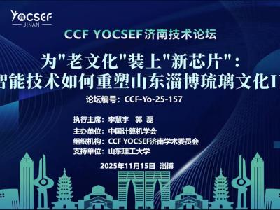 2025年11月15日,CCF YOCSEF济南学术委员会在山东省淄博市山东齐盛国际宾馆成功举办“为‘老文化’装上‘新芯片’:智能技术如何重塑山东淄博琉璃文化IP”技术论坛。论坛围绕淄博琉璃这一千年文化IP的数字化传承与创...