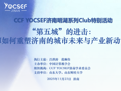 2025年11月23日,CCF YOCSEF济南在山东大厦成功举办明湖系列Club特别活动——“第五城的进击:AI如何重塑济南的城市未来与产业新动能”。活动立足济南在《城市综合发展指数报告》中高居第五的综合排名,围绕其在“创...