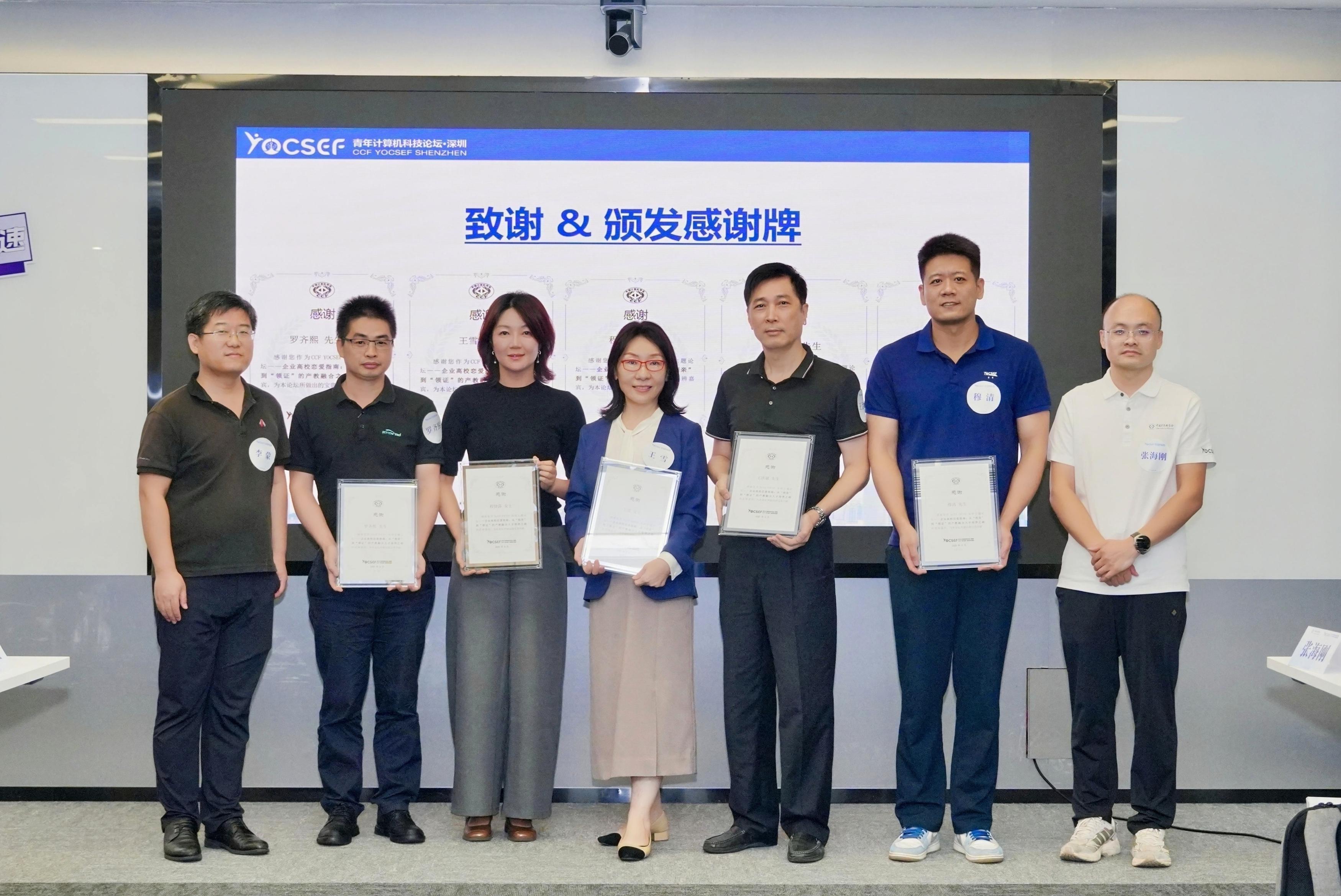 会议尾声,CCF YOCSEF深圳主席漆舒汉作总结致辞。他感谢各位嘉宾带来的精彩观点与现场的热烈研讨,也对英特尔大湾区科技创新中心、深圳市和合联众信息科技有限公司、上海睿赛德电子科技有限公司对本论坛活动的支持,表示了由衷的感谢。他提炼出本次讨论的核心启示:产教融合并非简单对接,而是一场“快”与“慢”的辩证艺术。高校需坚守育人根基的“慢功夫”,同时通过机制创新实现对产业需求的“快响应”,这才是破解人才困境的根本路径。同时,漆舒汉也介绍了CCF YOCSEF深圳后续的系列活动,也向各位嘉宾发出了邀请。