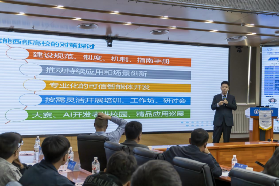 与会高校教师、企业代表围绕西部高校如何立足区域特点、产业需求和学科基础,构建与东部地区错位发展的AI+学科融合创新人才培养体系展开深入交流。大家普遍认为,西部高校应避开与东部高校在前沿领域的直接竞争,聚焦特色农业、生态保护、民族语言、丝绸之路文化等西部独有资源,深耕垂直领域AI应用。现场分享了智慧气象、定向培养、灾害监测与AI融合等特色实践案例,并针对现存的师资短缺、产教融合落地难、本地产业人才吸纳有限、学生实践能力不足等问题,提出分类培养学生、由学校统筹组建跨学科教学团队、深化校企精准对接、争取政策资金支持、借助企业资源补充算力与实践机会等建议,为西部高校突破同质化困境、打造人才培养特色提供了多元思路。