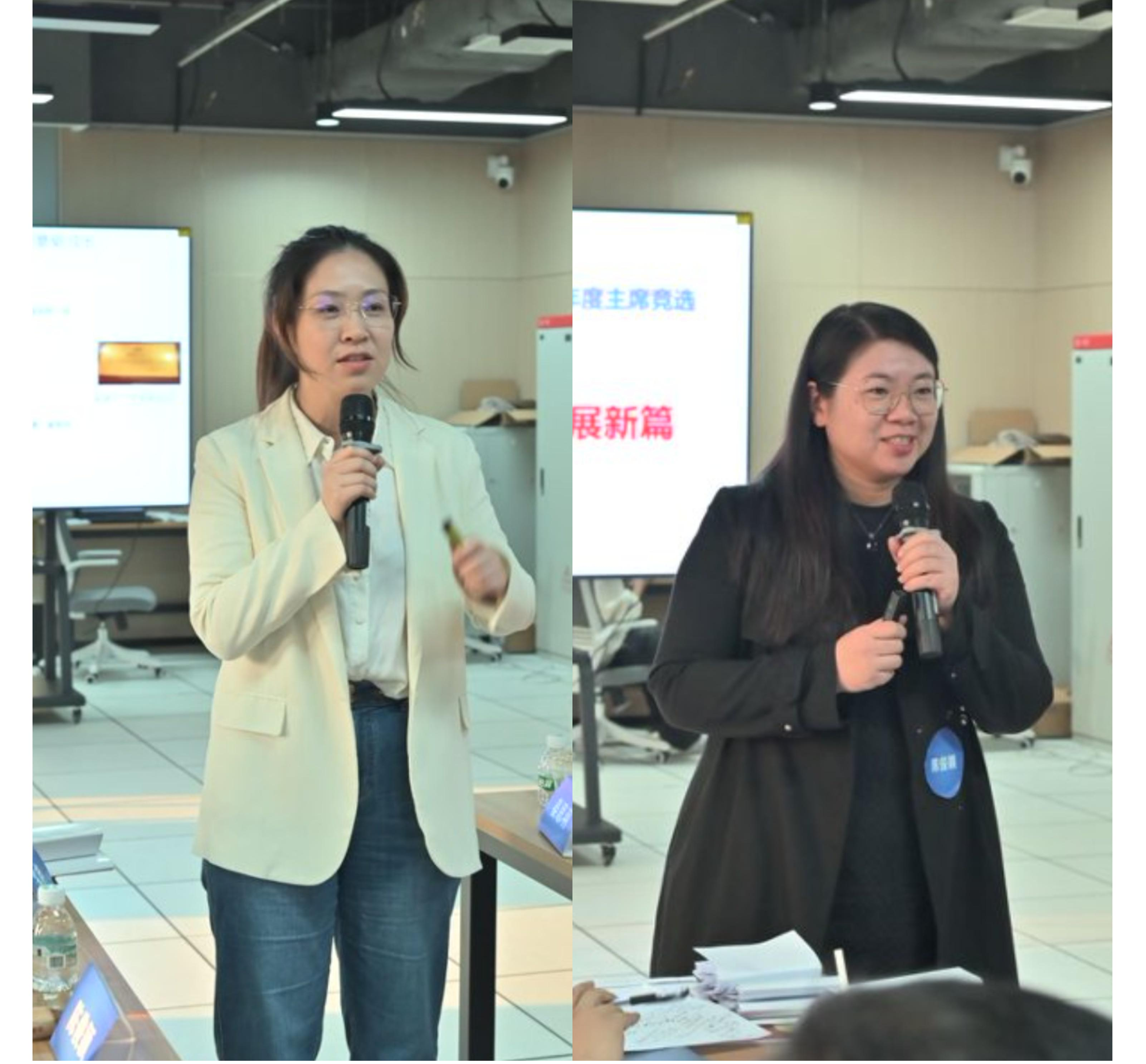 随后,会议进入候任主席竞选环节,由YOCSEF总部候任副主席张忠宝担任主持。根据报名情况,本轮竞选共姜思羽和陈俊颖两位候选人参与。候选人分别结合自身在 CCF YOCSEF 的履职经历,围绕组织理解、现状分析与未来工作设想进行了陈述展示,并就来自总部、分论坛代表及本地 AC 委员的提问进行了现场答辩。经现任AC委员无记名投票表决,姜思羽当选CCF YOCSEF广州分论坛2026-2027年度候任主席。