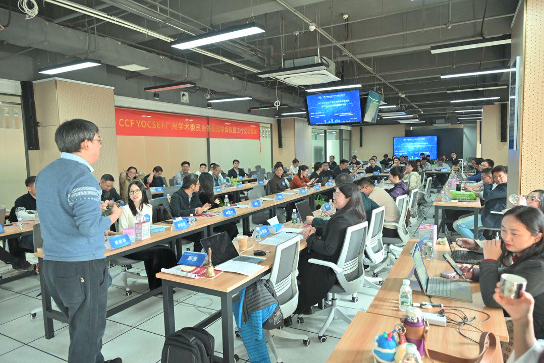 2026年1月17日下午,中国计算机学会(CCF)青年计算机科技论坛(YOCSEF)广州分论坛在广州大学黄埔研究院举办2026-2027年度换届选举暨第二次AC工作会议。CCF YOCSEF总部候任副主席张忠宝(北京邮电大学)、AC委员王宏宁(清华大学)、刘勇(中国2026人民大学)、陈小军(深圳大学)、东昱晓(清华大学),青岛、武汉、苏州、福州、郑州、哈尔滨、深圳、南京、杭州、成都等全国各地分论坛主席及AC委员,YOCSEF广州分论坛第三任主席臧根林(广州科韵大数据技术有限公司)、第十一任主席谭台哲(广东工业大学)、第十三任主席余志文(华南理工大学)、第十四任主席杨育斌、第十五任主席黄书强(暨南大学)、第十八任主席王昌栋(中山大学)、第十九任主席吴一冰(赛尔网络)、第二十任主席黄栋(华南农业大学)、第二十一任主席龙锦益(暨南大学)、第二十二任主席李冠彬(中山大学)、优秀AC委员刘雷(广东科技报)及现任AC委员参加会议,共计90余人。本次会议由CCF主办,CCF YOCSEF广州组织,广州大学、广东朝元信息科技有限公司和头歌平台为此次活动提供支持。