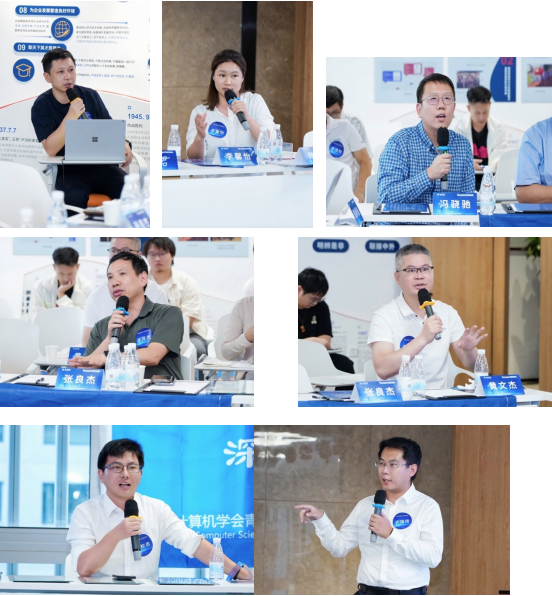 北京理工大学(珠海)助理教授高荣贞鹏城实验室副研究员梁骁俊中泓在线副总裁罗君、香港科技大学助理教授袁彬航北京理工大学(珠海)助理教授陈家贤、北京理工大学(珠海)助理教授周本加以及腾讯科技高级经理张伟鹏作为特邀嘉宾对三个思辨议题进行了引导发言,分别从AI时代下的基础学科科研人员价值重定位、校企协同的研究生态构建方式变化以及高等教育人才培养方案优化等方面发表了自己的独特见解。