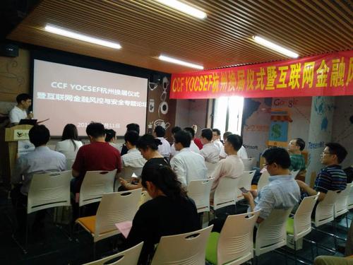 2016年6月11日,CCF YOCSEF杭州换届仪式暨互联网金融安全专题论坛在杭州聚牛顺利举行。CCF YOCSEF副主席吴文峻教授,CCF YOCSEF AC董笑菊教授、林俊宇博士,总部荣誉委员陶建华博士、卜佳俊教授等特邀出席。出席会议的还有来自上海、南京、苏州、太原、无锡等兄弟分论坛的13位代表们以及CCF YOCSEF杭州20余名委员。